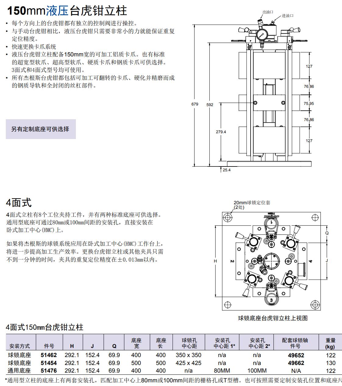 150mm液壓臺(tái)虎鉗立柱 4面式