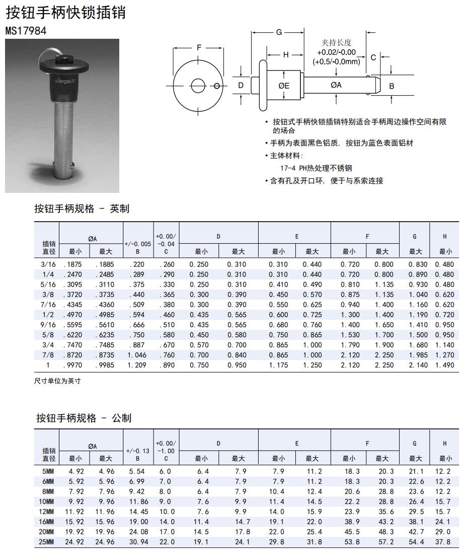按鈕手柄快鎖插銷