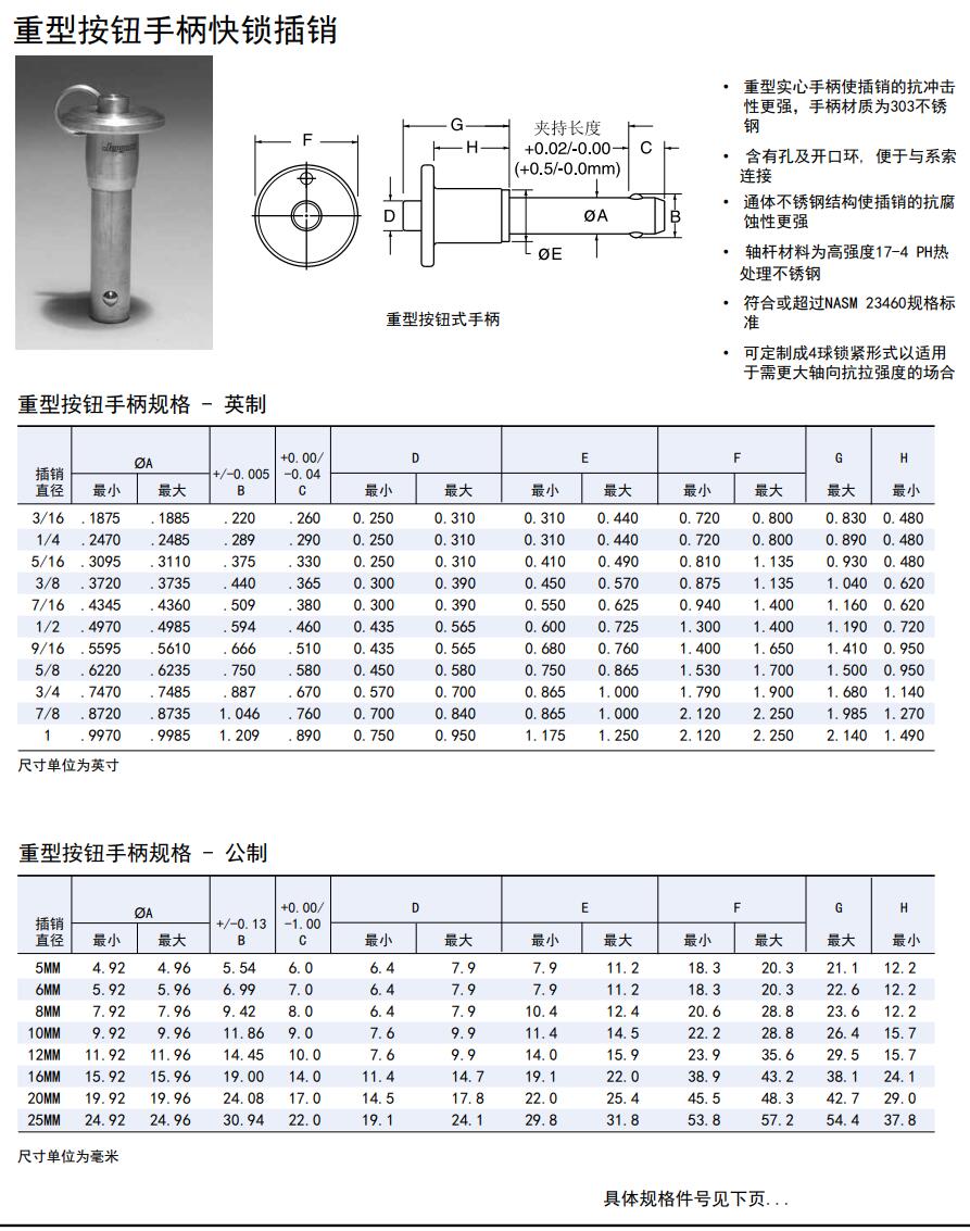 重型按鈕手柄快鎖插銷