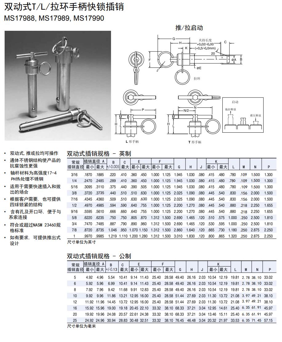 雙動(dòng)式T/L/拉環(huán)手柄快鎖插銷