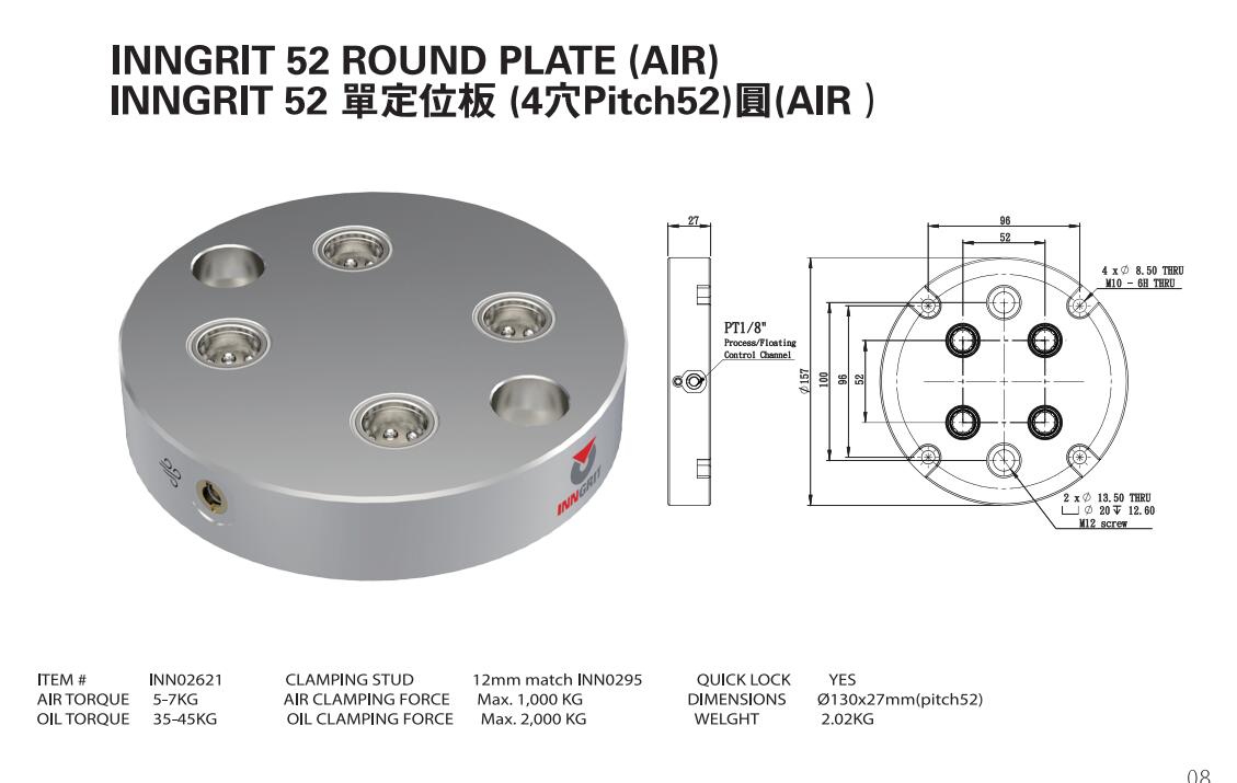 INN02621 單定位板 (4穴Pitch52)圓(AIR)
