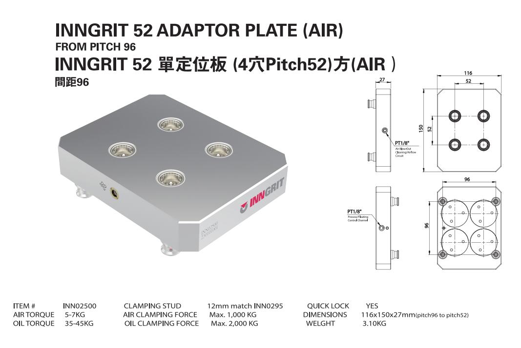 INN02500 單定位板 (4穴Pitch52)方(AIR)-間距96